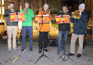 Dort wurden wir vom Posaunenchor festlich empfangen. Feierlich zur musikalischen Begleitung spielte der Posaunenchor Laternenlieder und alle Familien sangen erfreut mit.