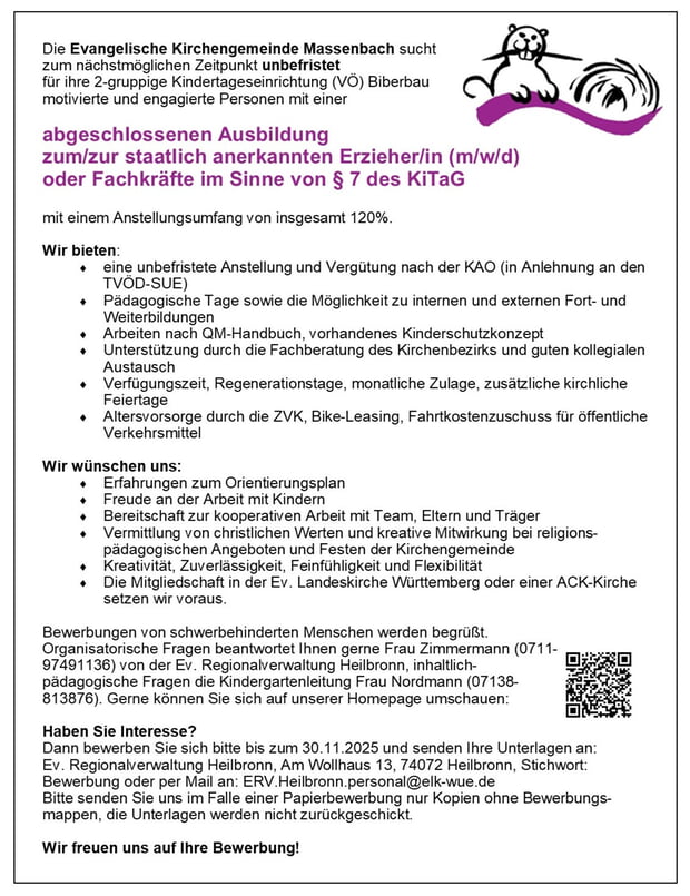 Erzieher und Erzieherinnen (m/w/d) in Voll- oder Teilzeit in Großgartach